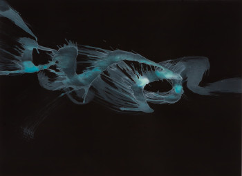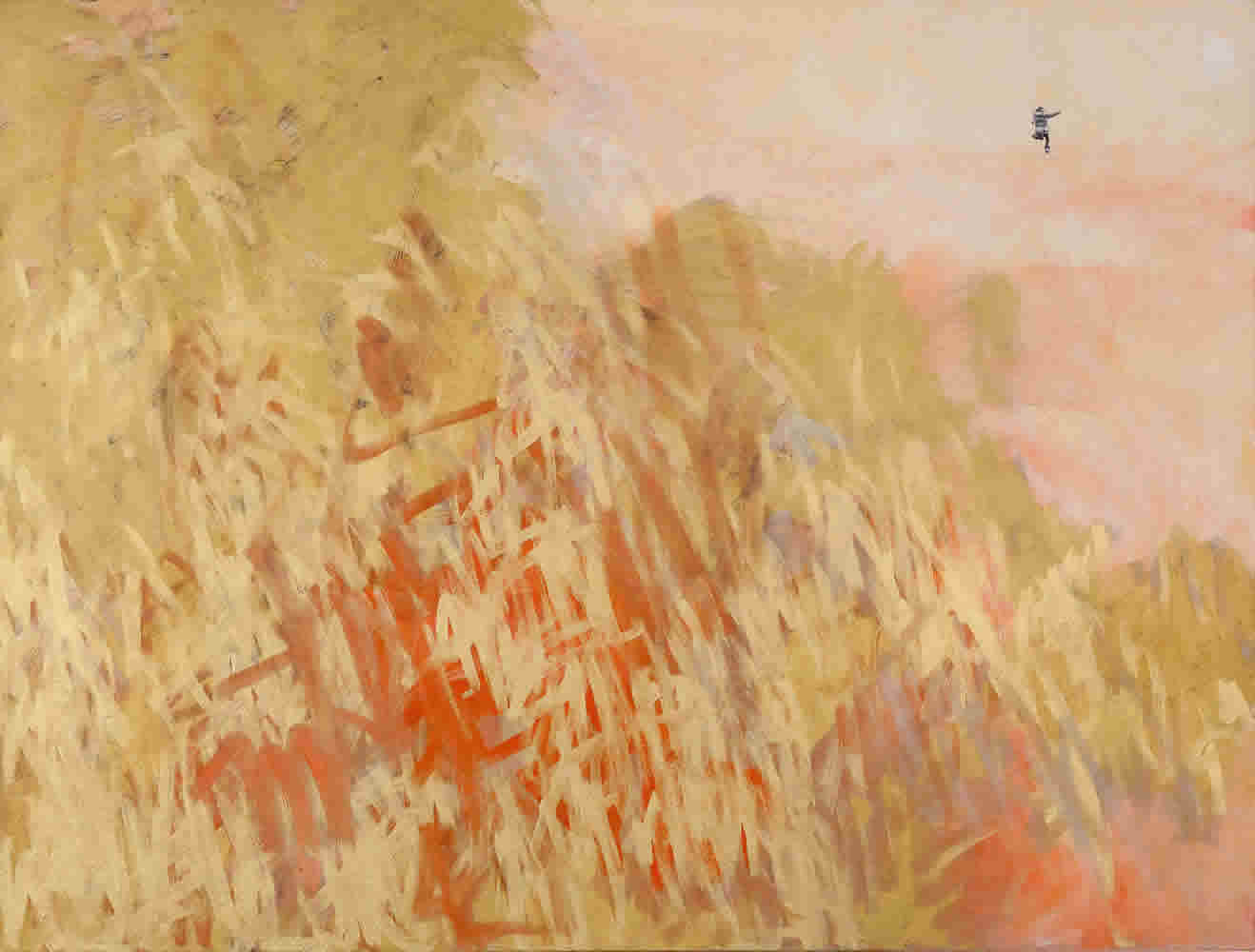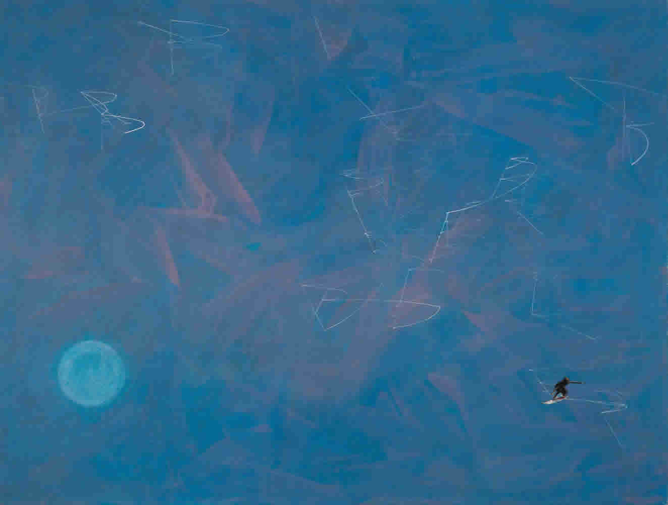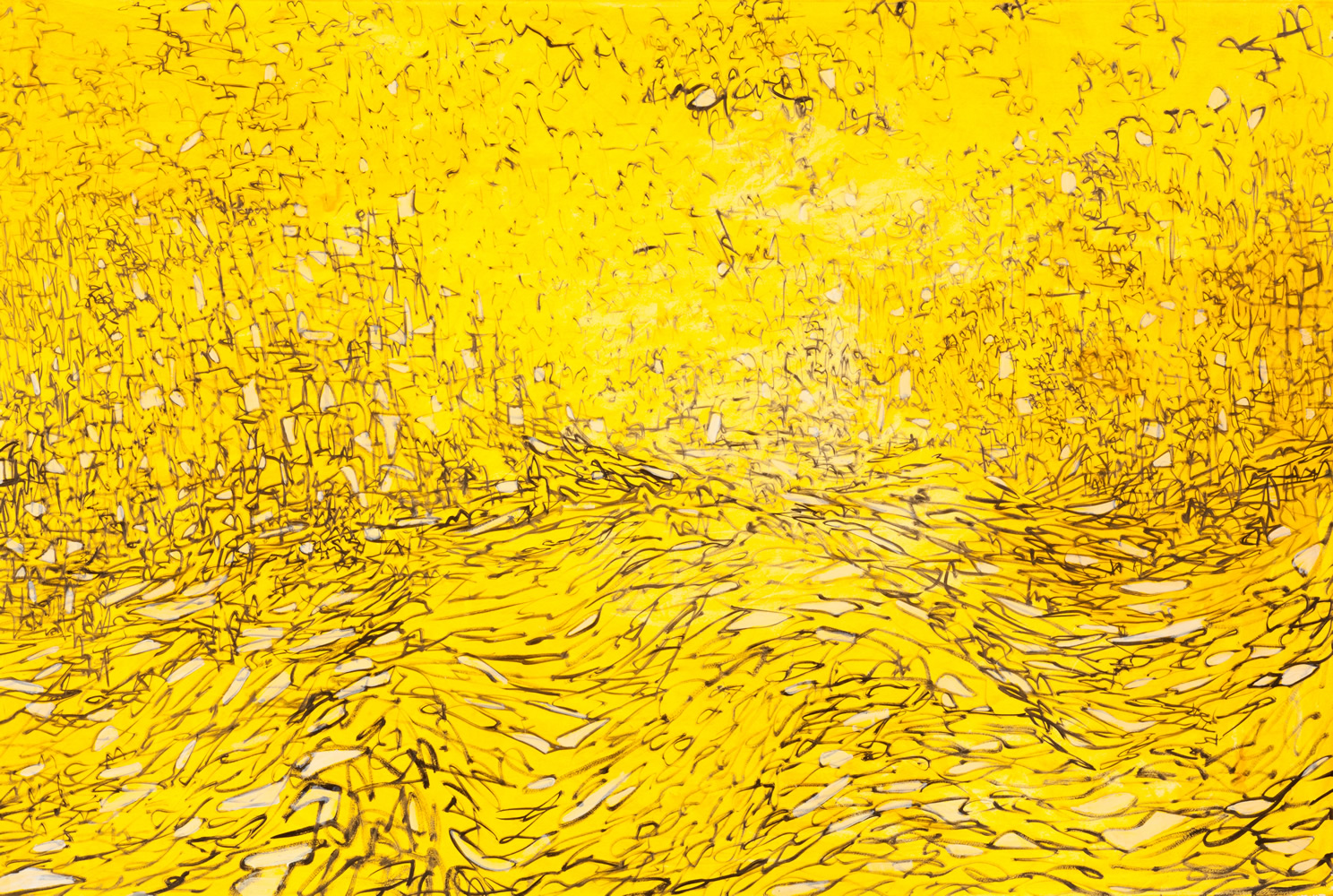 (one of series of twelve) Pigment, paper and acrylic on canvas, 36” × 45”