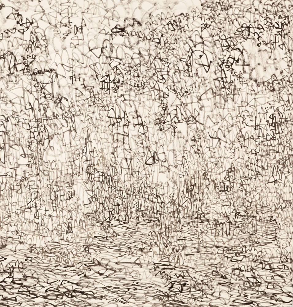 (one of series of twelve) Pigment, paper, and acrylic on canvas, 36” × 45”