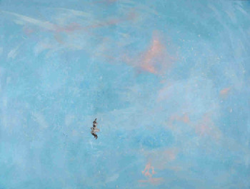(one of series of twelve) Pigment, paper, copper, and acrylic on canvas, 36” × 45”